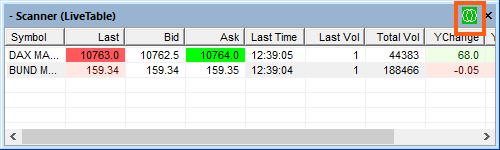 Das Volumen wird in einer separaten Spalte als Zahl und als Histogramm-Balken angezeigt. Das Histogramm wird bezogen auf das maximale gehandelte Volumen aller Ausführungspreise normalisiert (nicht nur bezogen auf die momentan angezeigten Preise).