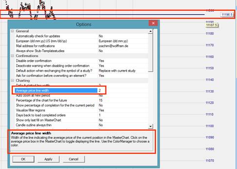 - Der MasterChart kann im Heikin-Ashi-Stil angezeigt werden. Die verwendeten Farben sind über den Farb-Manager einstellbar.