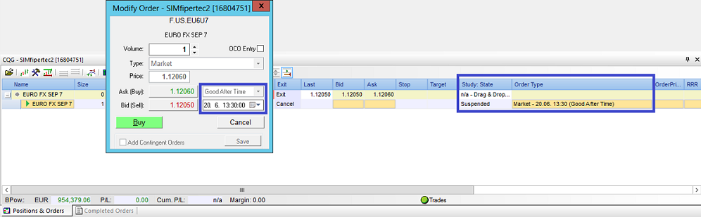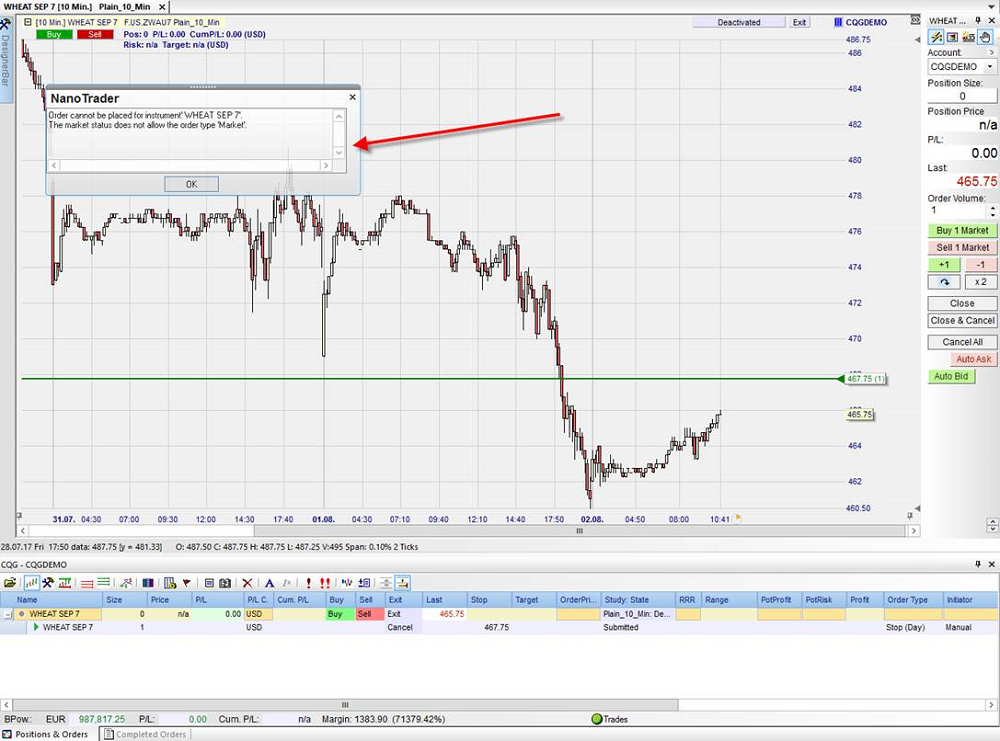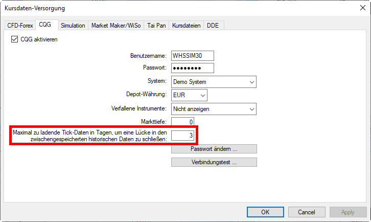 Um diese Funktionalität zu nutzen, müssen historische Daten von CQG aktiviert sein.