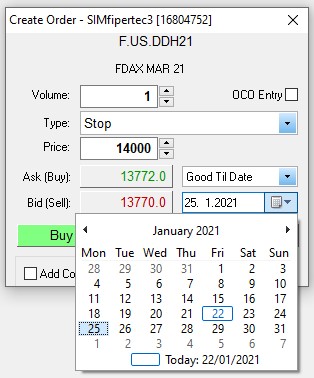 - Der Order-Erzeugen-Dialog zeigt in der Titelzeile das Konto an, über das gehandelt wird.