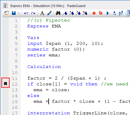 Um den Express-Code zu anzusehen oder zu ändern, doppelklicken Sie auf den BETrailStop-Eintrag in der DesignerLeiste, nachdem der Stop übder den "Indikator hinzufügen"-Dialog eingefügt wurde.